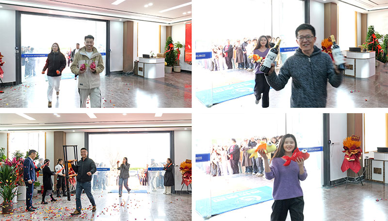 在眾人的期待中,員工代表們手捧寓意美好的物品,邁著整齊的步伐走進(jìn)新辦公大樓。手持現(xiàn)金的員工,寄托著海拓集團(tuán)財(cái)源滾滾的美好愿景;扛著梯子的員工,祝福公司步步高升;拿著柿子茶罐和兩瓶酒,寓意事事如意、長(zhǎng)長(zhǎng)久久;捧著蘋果的員工,祈愿公司平安順?biāo)?;拿著火龍果的員工,象征著事業(yè)紅紅火火;玩具魚和花餑餑,則寓意著年年有余、生活富足。員工們臉上洋溢著自信幸福的笑容,對(duì)海拓的未來充滿期待,也為典禮增添了一抹溫馨而熱烈的色彩。