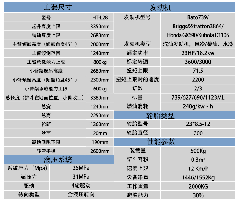 HT-L28 伸縮臂小型裝載機參數(shù)