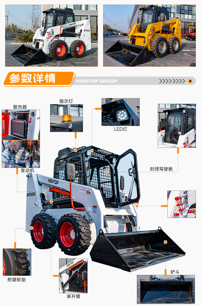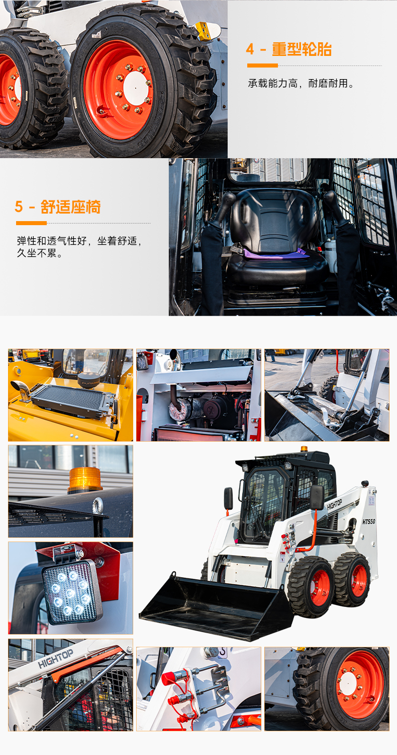 4,可選配10-16.5-12PR RG400型重載輪胎,以及30*10-16(160/205)規(guī)格實芯輪胎;旋轉警示燈,半封閉式駕駛室(無暖風/無空調、無門無窗組件)